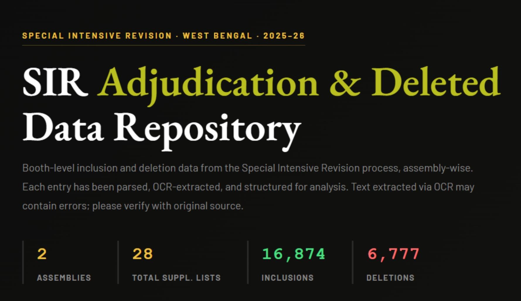 Days before finalising electoral rolls for the West Bengal assembly elections, the Supreme Court of India allowed the Election Commission of India to bar nearly 2 million voters, rejecting the state’s plea to delay the freeze. The move affects those flagged during the SIR process, many now set to appeal. Meanwhile, a Sabar Institute study has flagged stark disparities, with Muslims comprising 95% of deleted voters in Nandigram. Similar concerns have emerged in Murshidabad, where 432 names were removed from a single Muslim-majority booth in Suti, raising allegations of targeted disenfranchisement.